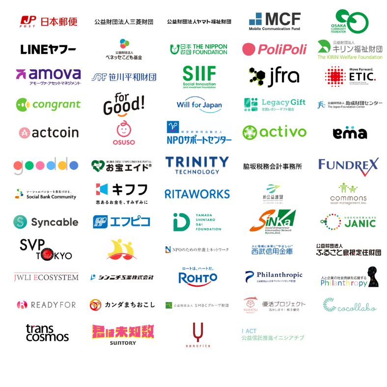 企業や助成団体をはじめとする多くの団体が、グッドギビングマーク制度の趣旨に賛同してくださっています。